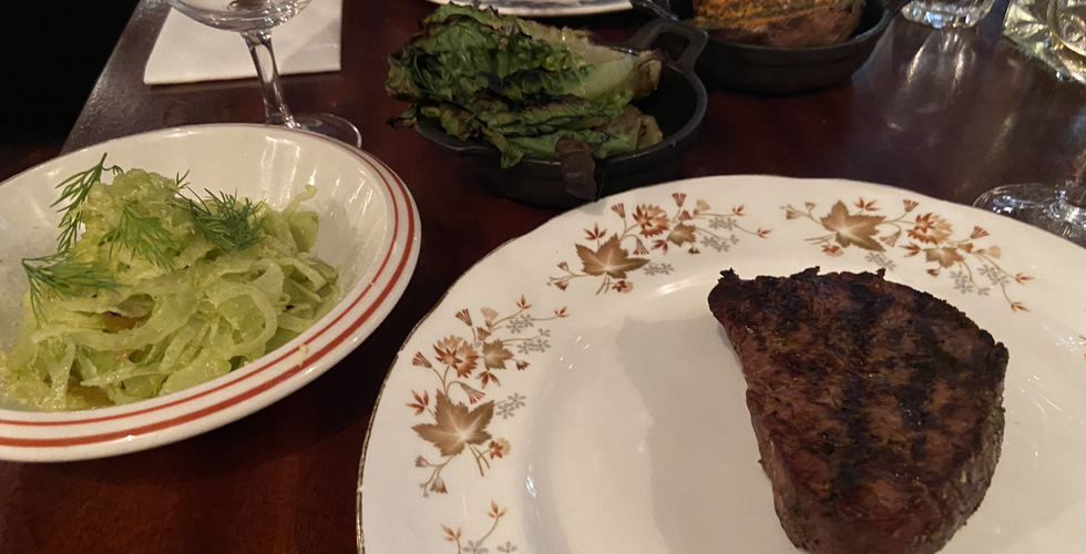 A little inconspicuous matte jet black facade leading you down a set of step stairs on great windmill street is Blacklock. Although the understated facade you are dropped down into their little world which is filled with a light effervescent atmosphere. Styled like a speakeasy with the black painted walls and darked toned woods. It’s a creative chop house with a tight menu that's both on-brand yet very elegant.
